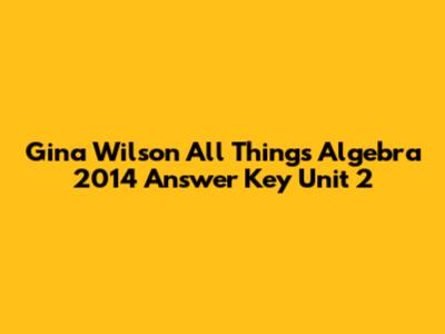 Gina Wilson Algebra 2: Unit 2 Answer Key