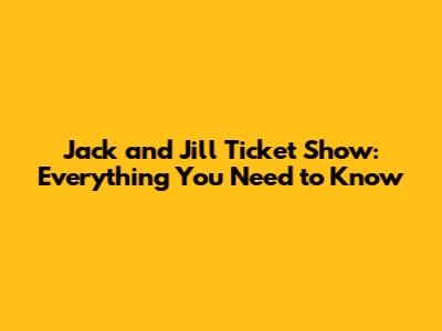 Jack And Jill Ticket Show: Everything You Need To Know