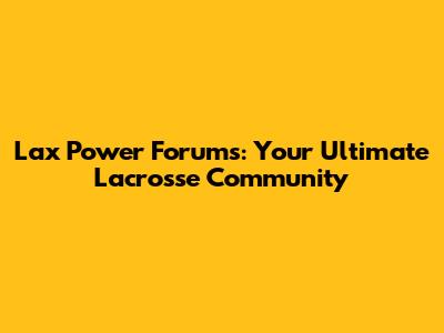 Lax Power Forums: Your Ultimate Lacrosse Community