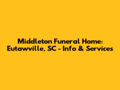 When you're dealing with the loss of a loved one, finding the right funeral home is super important. If you're in Eutawville, South Carolina, Middleton Funeral Home is a name you might come across. Let's dive into what makes this place tick and how they serve the community during tough times.